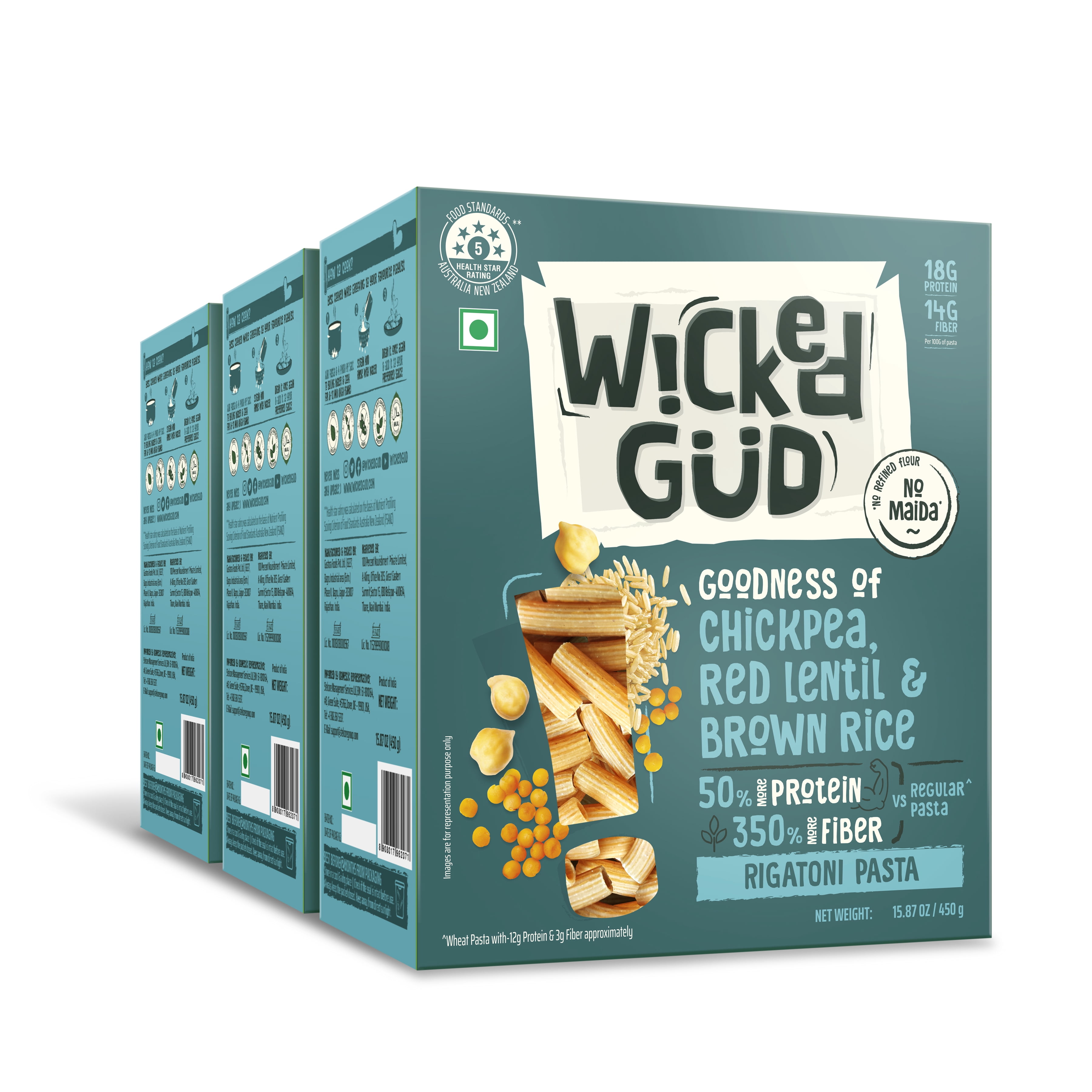 Wickedgud Rigatoni Pasta 15 87 Ounce Pack Of 3 Chickpeas Red Lentils Brown Rice Vegan Gluten Free Ingredients Healthy Pasta High Protein High Fibre Lower Net Carbs Non Gmo Walmart Com